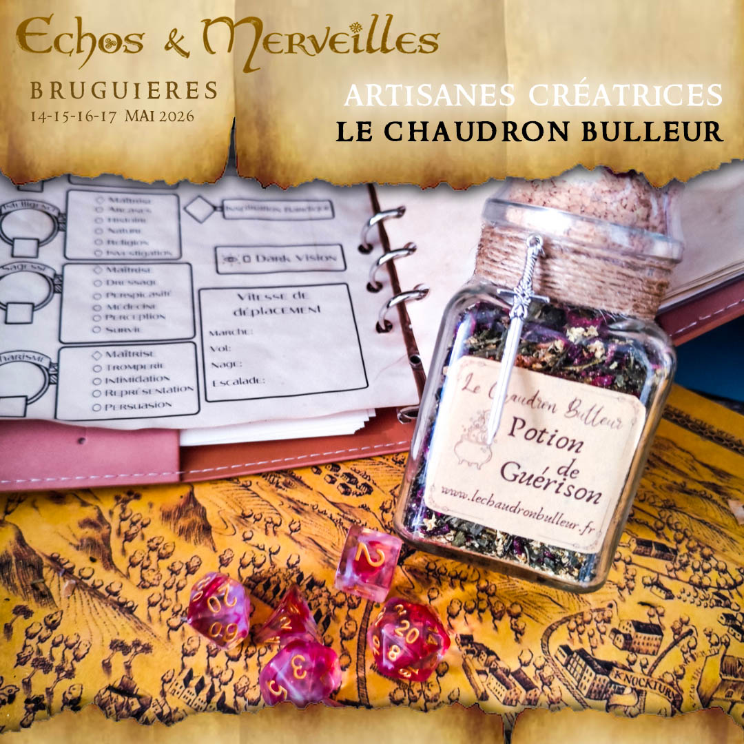 Le marché des créateurs du Village des Légendes de Echos & Merveilles regorge de pépites et de découvertes. toutes les créations sont 100% artisanales au Royaume du Roi Mundis.Près de 150 artisans seront présents du 14 au 17 Mai 2026.